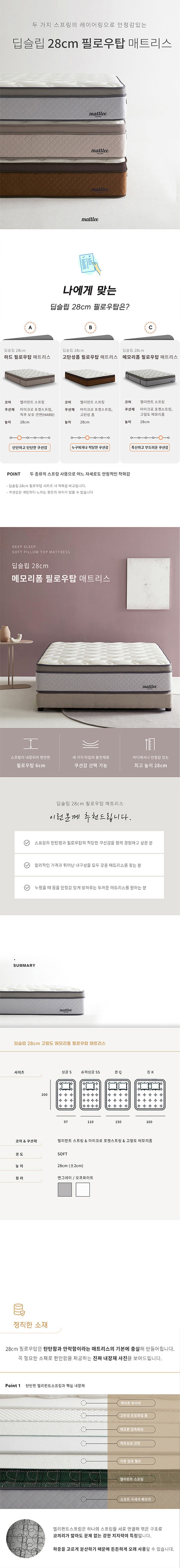 매트리 딥슬립 28cm 메모리폼 필로우탑 침대 매트리스 S SS Q K
